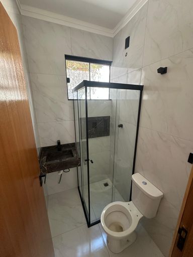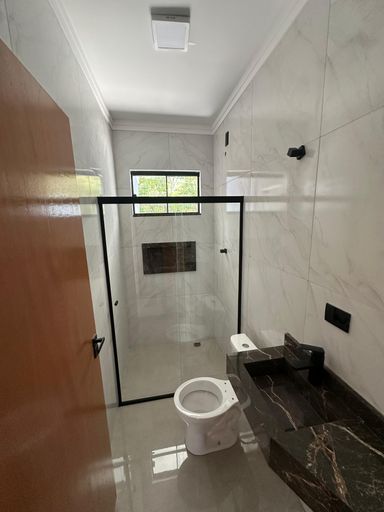✅ Banheiro com pia esculpida em porcelanato e nicho;
