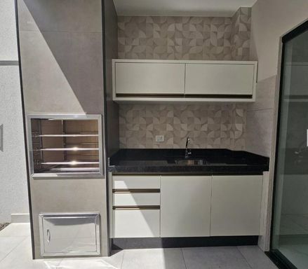 ✅ Área gourmet com churrasqueira em porcelanato, bancada em granito;
