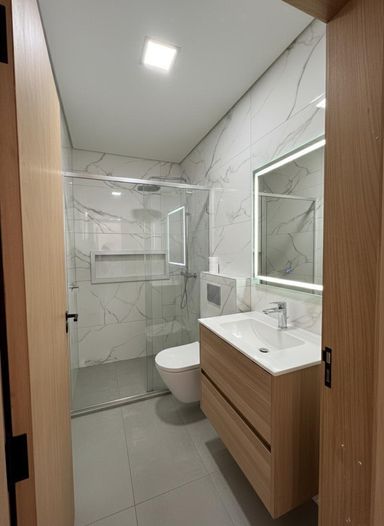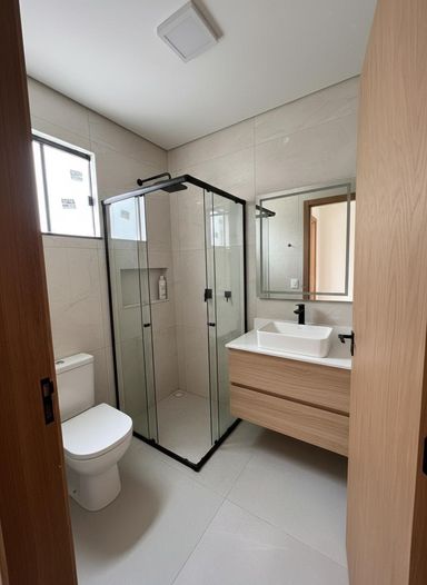 ✅ Banheiro Social e suíte com pia esculpida, nicho e box;