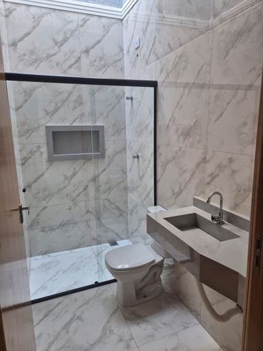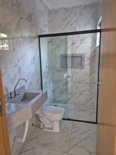 ✅ Banheiro social com lavatório em porcelanto e box;