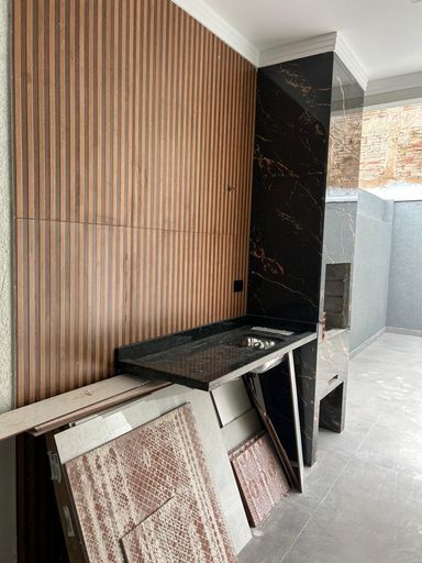 ✅ Área gourmet com churrasqueira, pia e balcão de granito;