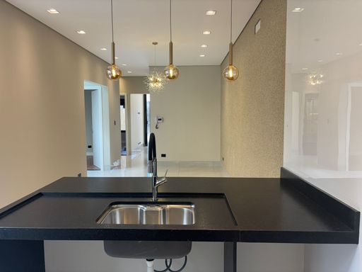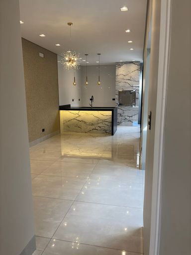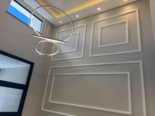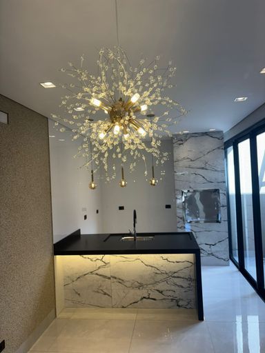 ✅ Sala com pé direito alto, lustre e LED;